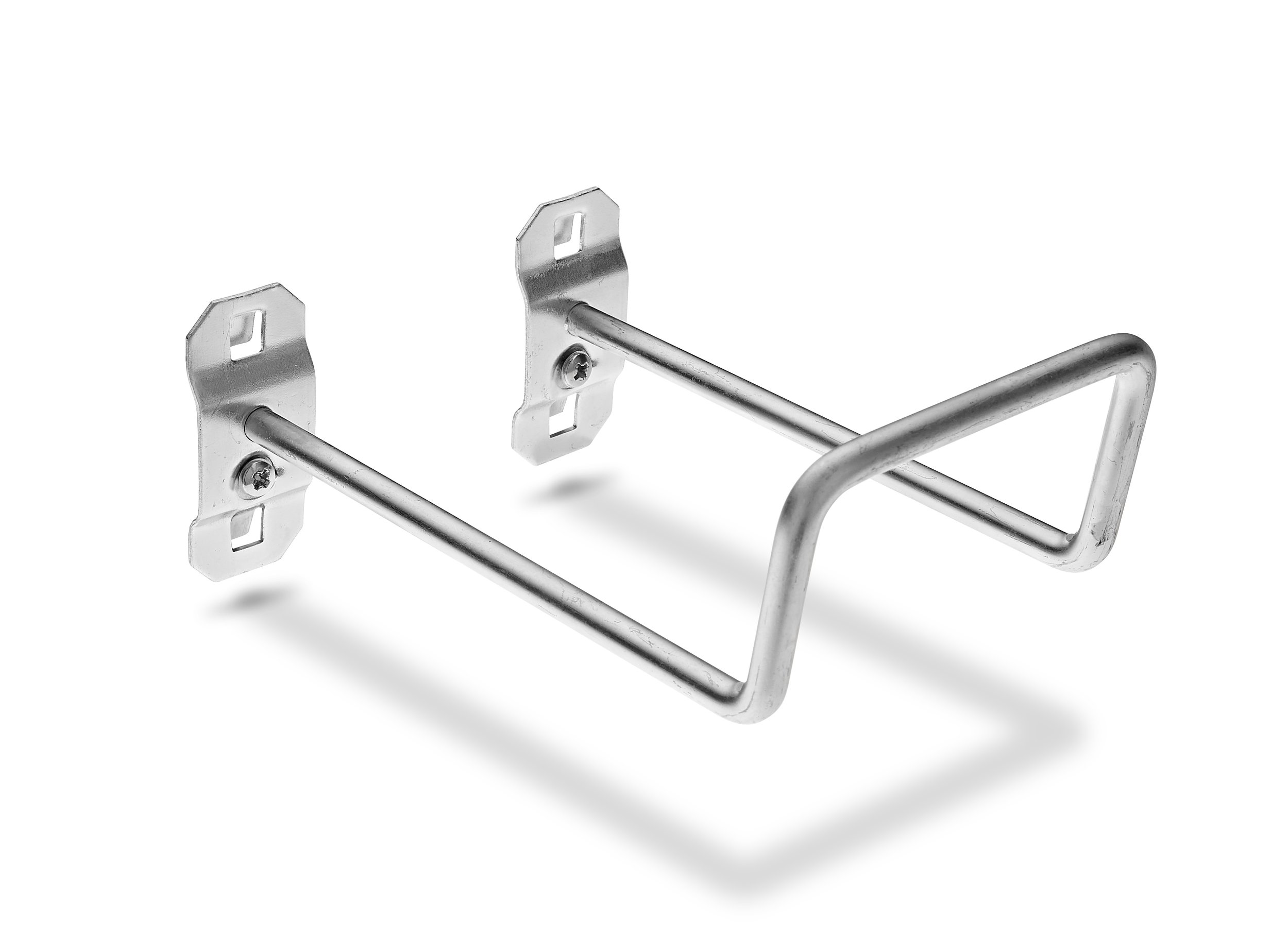 Ideal solution for storing hoses, electric cords and any small or large item with a handle that will fit over the top of the enclosed hook